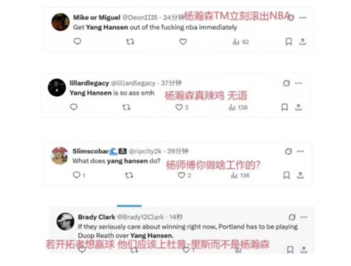 说实话这些球迷的有些留言是比较伤人,比较过分的。还记得在之前夏季联赛以及季前赛的时候,其实很多国外球迷还是认可杨瀚森的。但通过最近几场常规赛杨瀚森的表现比较低迷,很多外国球迷可能也失去了耐心。之前他们还认为杨瀚森被16顺位选中是开拓者的幸运,现在来看他们还担心杨瀚森有可能会水掉,并且认为开拓者在首轮选中杨瀚森非常的不值得。